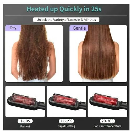 Designed for comfort and ease of use, the Electric Hair Straightener Comb has a lightweight build and an ergonomic handle, making styling effortless and reducing hand fatigue.