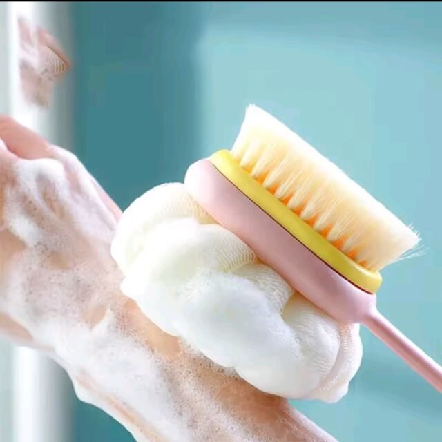 Achieve smooth, radiant skin with our long double sided bathing brush. Features soft bristles for gentle exfoliation and a handle long enough to scrub your back effortlessly.